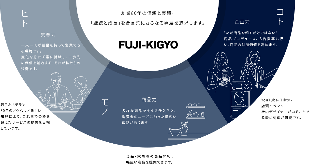 富士器業株式会社は、国内外1,600社以上のメーカー様とお取引を行い、家庭用品・生活用品を中心とした多彩な商品を取り扱う専門商社です。
